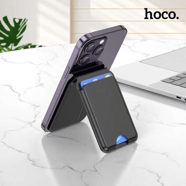 El diseño multifuncional del HOCO GT3 no solo lo convierte en un porta tarjetas, sino que también puede funcionar como soporte para tu dispositivo móvil. Su estructura plegable permite ajustar la inclinación para facilitar la visualización de contenido multimedia, videollamadas o lectura en cualquier lugar.