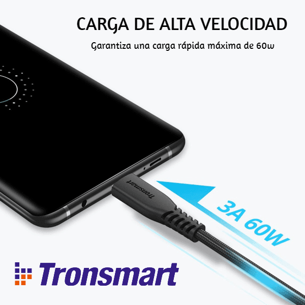 TRONSMART – Cable de datos trenzado Tipo C a Tipo C TCC01